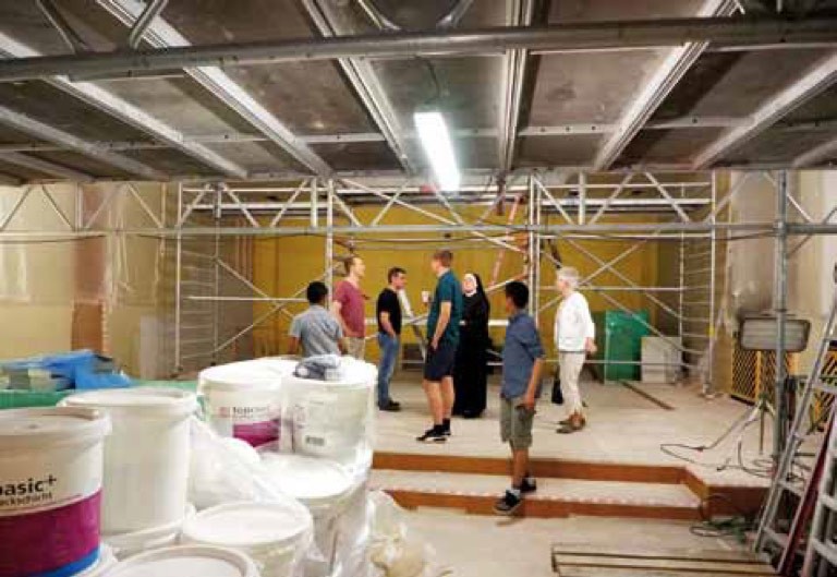 På grunden er der, dér hvor det beregnes, at det nye kirkerums alter skal stå, rejst et telt og et lille alter er bygget op med den allerede skænkede altertavle forestillende Rosenkransdronningen.